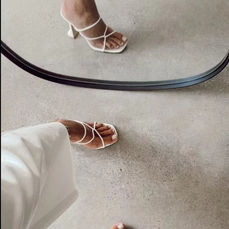 2023 対外貿易大きいサイズ夏の新しいヨーロッパとアメリカのファッションスクエアヘッドワイングラスハイヒールクロスストラップサンダルとスリッパ女性アマゾン